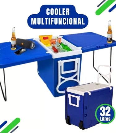 Conheça o Cooler Multifuncional Super térmico com mesa retrátil